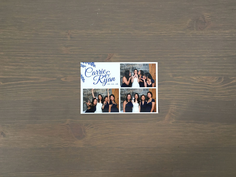 Branding and identity for a wedding event. Design for invitation, reply card, envelope, and photo border.